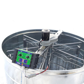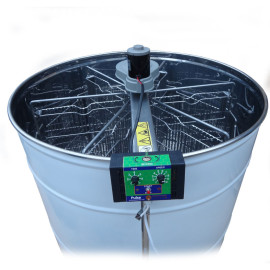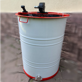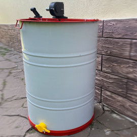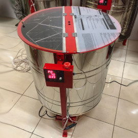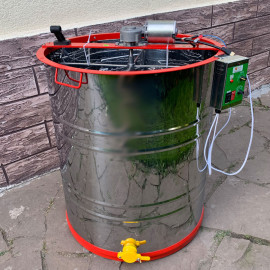 Медогонка 6-ти рамкова нержавіюча на підставці, поворотна рамка Дадан, ремінна передача